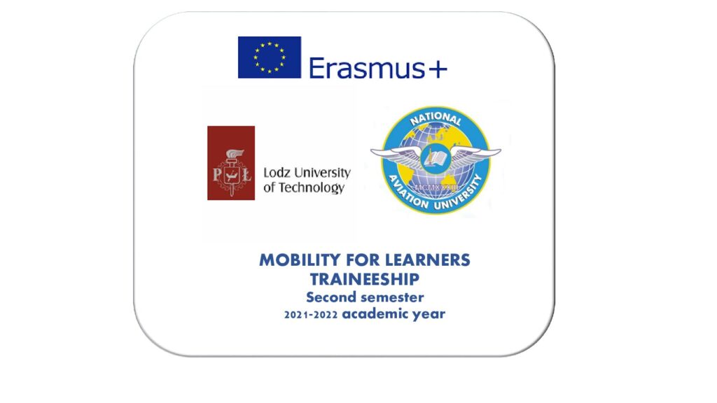 Національний авіаційний університет оголошує конкурс для ЗДОБУВАЧІВ ВИЩОЇ ОСВІТИ на проходження навчання у Технічному університеті м. Лодзь (Польща). Конкурс проводиться в рамках програми академічної мобільності Erasmus+.