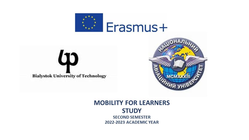 Національний авіаційний університет оголошує конкурс за програмою академічної мобільності Erasmus+ на навчання у Bialystok University of Technology (Польща) на другий семестр 2022-2023 навчального року.