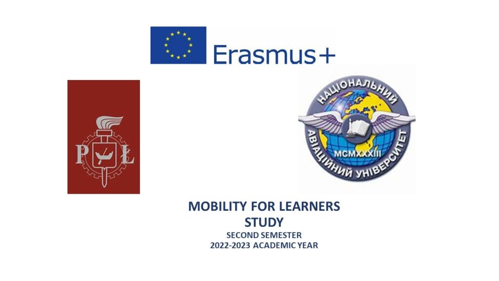 Національний авіаційний університет оголошує конкурс за програмою академічної мобільності Erasmus+ на навчання у Lodz University of Technology (Польща) на другий семестр 2022-2023 навчального року (3 місяці).
