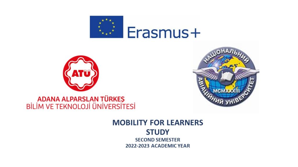 Національний авіаційний університет оголошує конкурс за програмою академічної мобільності Erasmus+ на навчання у Adana Alparslan Türkeş Science and Technology University (Туреччина) на другий семестр 2022-2023 навчального року.