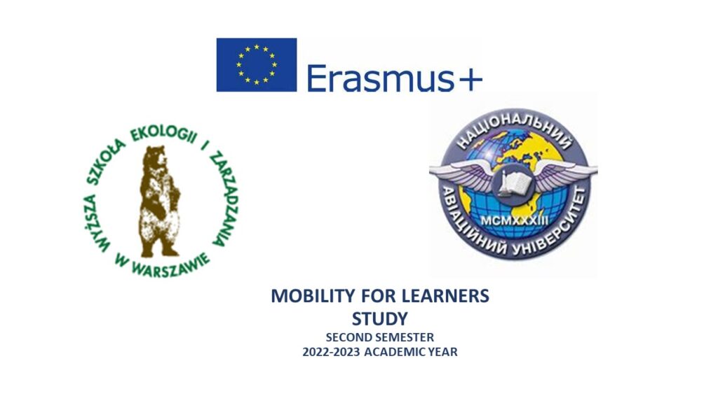 Національний авіаційний університет оголошує конкурс за програмою академічної мобільності Erasmus+ на навчання у University of Ecology and Management in Warsaw (Польща) на другий семестр 2022-2023 навчального року.