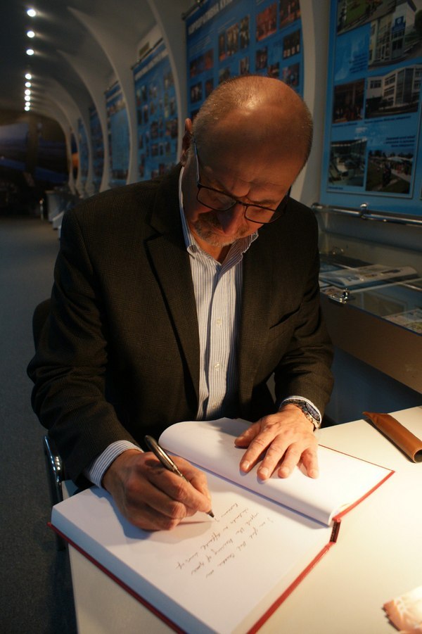 У завершальній частині високий гість коротко ознайомився з експозицією Музею авіації та залишив запис у Книзі почесних гостей НАУ.