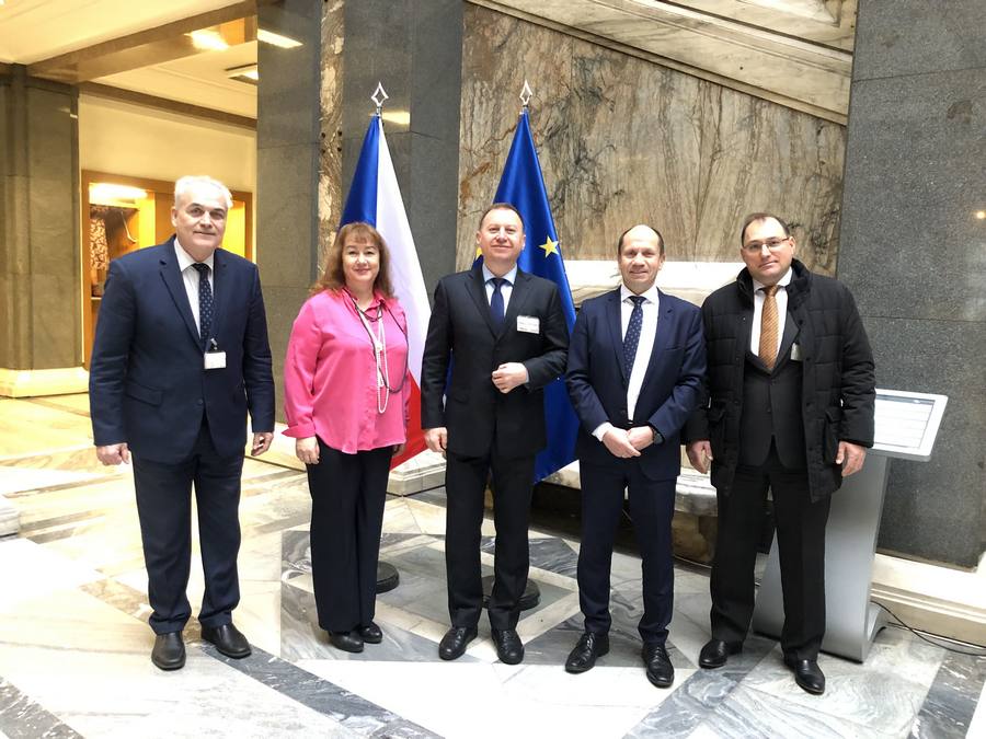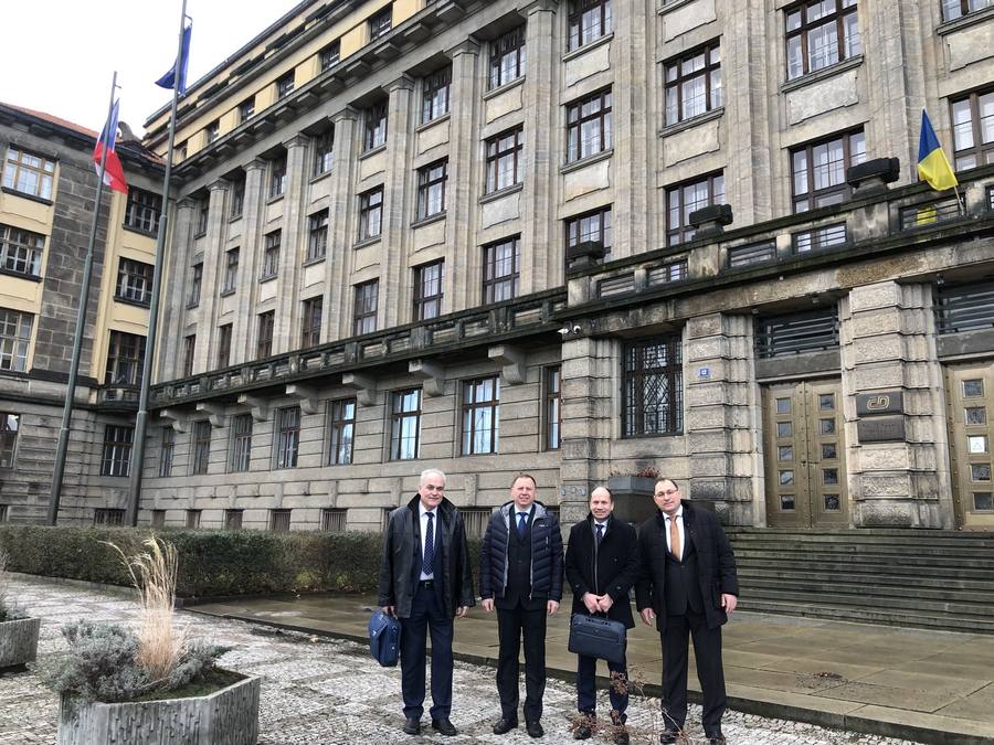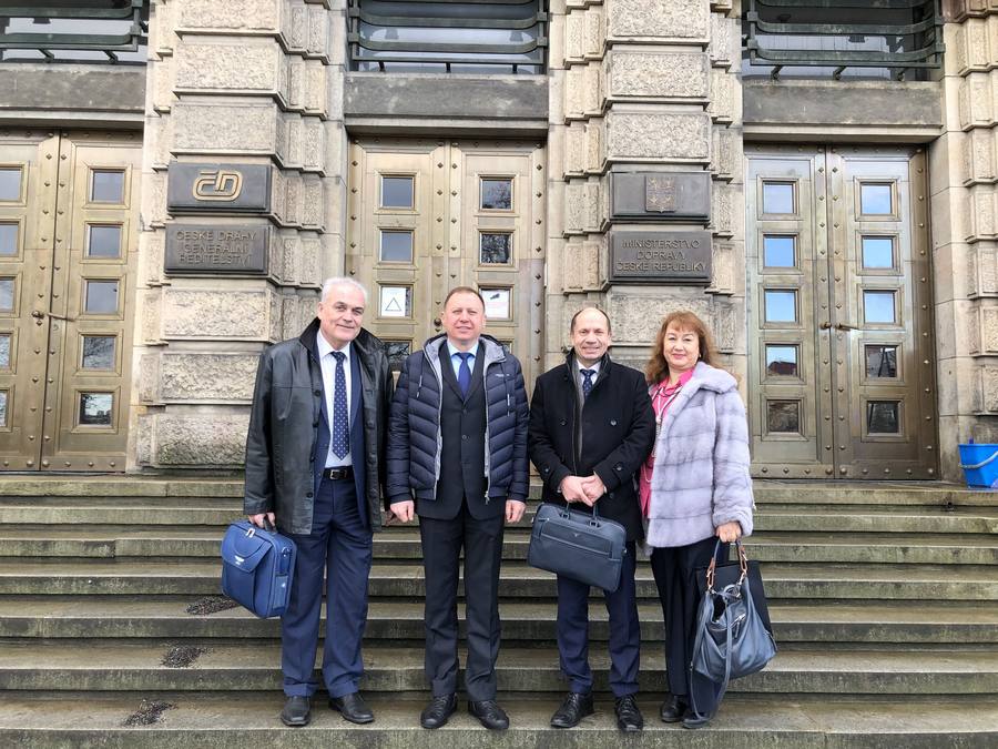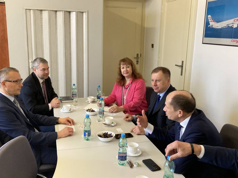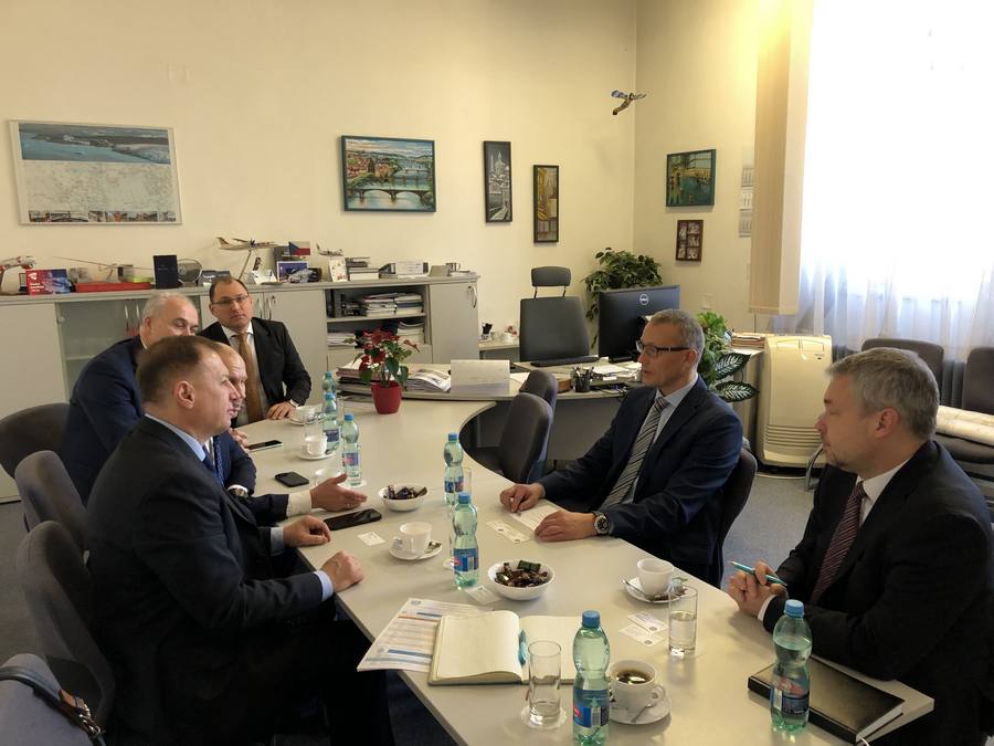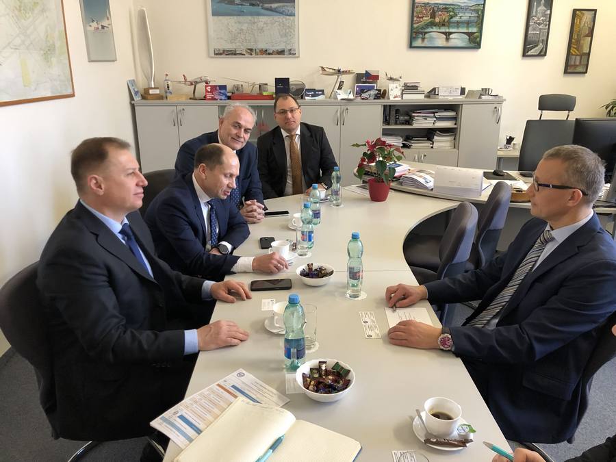 В рамках візиту до м. Прага в.о. ректора НАУ Володимир Шульга, проректор з міжнародного співробітництва і освіти Ірина Зарубінська та помічник ректора Сергій Кондратюк відвідали Міністерство транспорту Чехії і провели робочу зустріч із заступником голови департаменту цивільної авіації цього міністерства Мареком Шкрною та заступником директора Управління цивільної авіації Чехії Витеславом Хезкі. Також у заході взяли участь Міхал Маркович та Іржі Прохазка, керівники льотної школи FAIR, де навчаються студенти-пілоти НАУ.