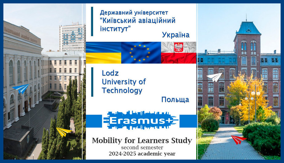 Державний університет “Київський авіаційний інститут” оголошує конкурс за програмою академічної мобільності Erasmus+ на навчання у Lodz University of Technology (Польща) на другий семестр 2024-2025 навчального року.