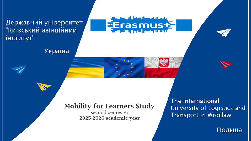Державний університет «Київський авіаційний інститут» оголошує конкурс на отримання стипендії від програми Erasmus+ для навчання протягом другого семестру 2025–2026 н. р. в The International University of Logistics and Transport in Wroclaw