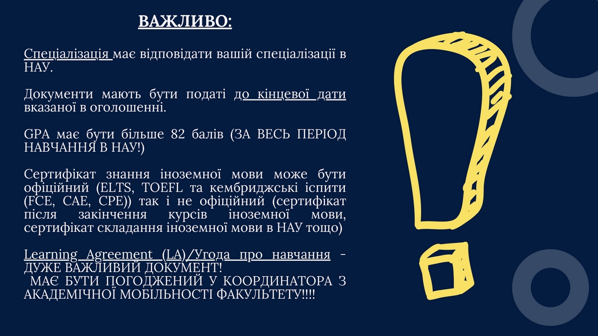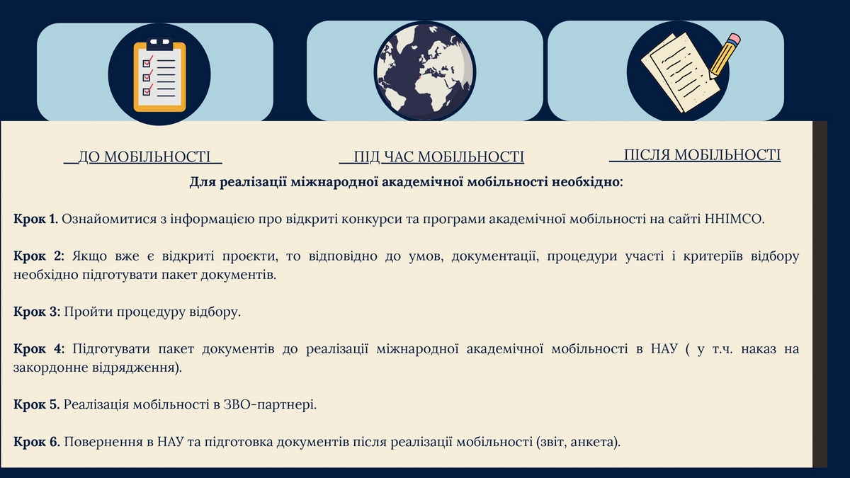 Для студентів усіх освітніх рівнів за усіма галузями знань участь у мобільності є можливістю навчатися або стажуватися за кордоном у межах навчання за основною освітньою програмою у ЗВО ;